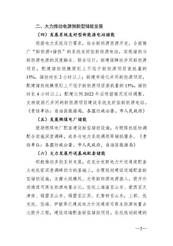 全面推廣“新能源+儲(chǔ)能”的系統(tǒng)友好型新能源電站,實(shí)現(xiàn)儲(chǔ)能與新能源電源的深度融合、聯(lián)合運(yùn)行。新建保障性并網(wǎng)新能源項(xiàng)目,配建儲(chǔ)能規(guī)模原則上不低于新能源項(xiàng)目裝機(jī)量的15%,儲(chǔ)能時(shí)長(zhǎng)2 小時(shí)以上;新建市場(chǎng)化并網(wǎng)新能源項(xiàng)目,配建儲(chǔ)能規(guī)模原則上不低于新能源項(xiàng)目裝機(jī)量的15%,儲(chǔ)能時(shí)長(zhǎng)4 小時(shí)以上;配建比例2022 年后根據(jù)情況適時(shí)調(diào)整。支持鼓勵(lì)已并網(wǎng)的新能源項(xiàng)目建設(shè)系統(tǒng)友好型新能源電站。