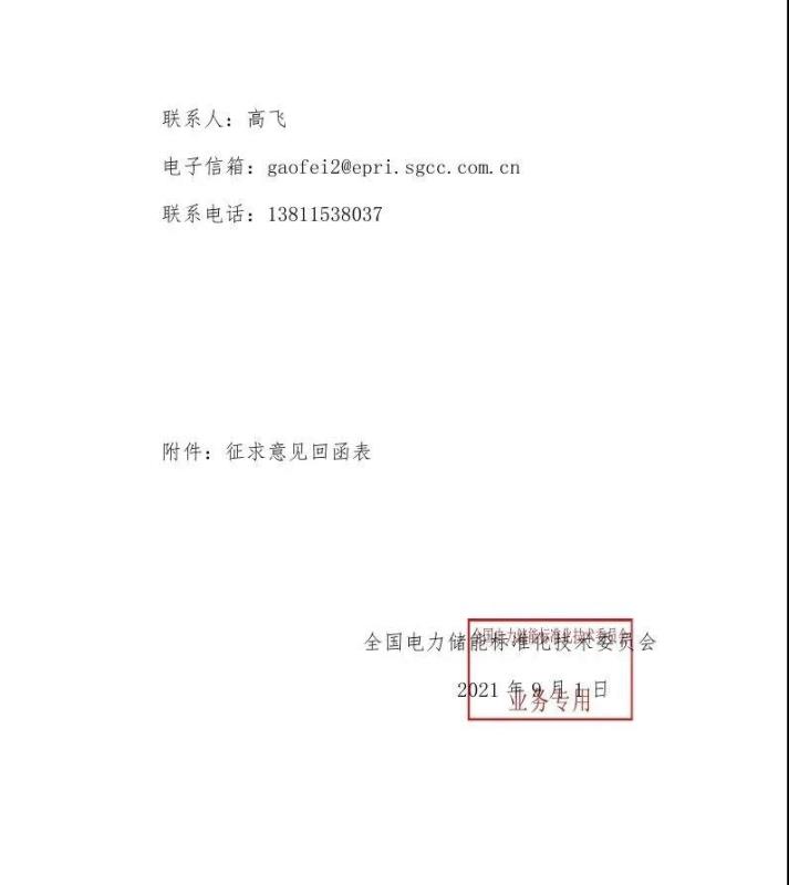 關(guān)于征求國家標(biāo)準(zhǔn)《電化學(xué)儲能電站安全規(guī)程》意見的函