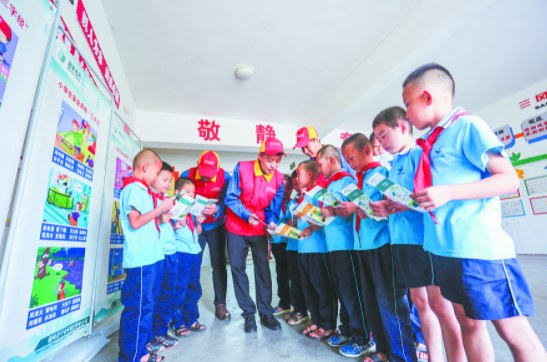 國網(wǎng)山東綜合能源服務(wù)有限公司濟(jì)寧分公司員工向?qū)W生宣傳節(jié)能知識。東海 攝