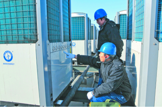 河北趙縣供電公司“電管家”運(yùn)維人員正在巡視檢測自強(qiáng)學(xué)校空氣能供熱站設(shè)備。 侯西果 攝