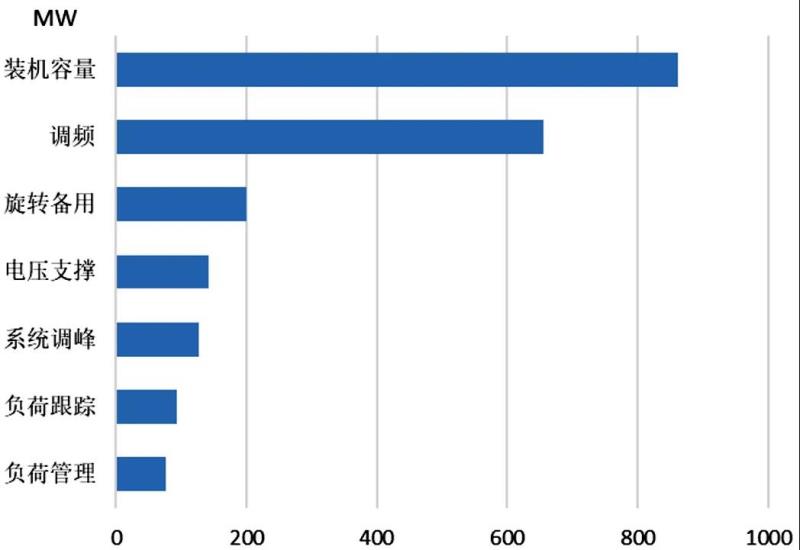 圖1 美國電池儲能參與不同服務(wù)場景的容量