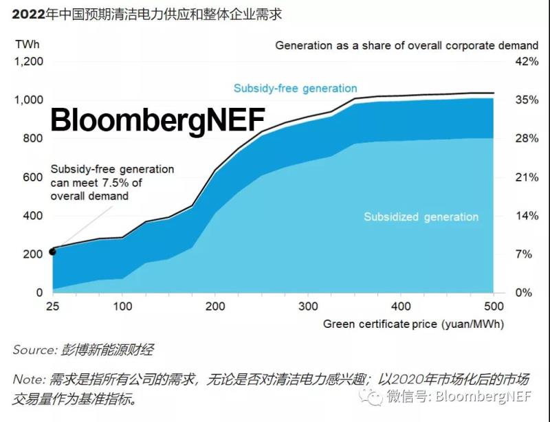 由于發(fā)電企業(yè)也可以將電力出售給電網(wǎng),有意參與綠電交易試點(diǎn)的企業(yè)將需要支付溢價(jià),預(yù)計(jì)會(huì)比當(dāng)前電價(jià)高5-38%,利潤(rùn)率不高或需求較大的企業(yè)可能會(huì)因此望而卻步。彭博新能源財(cái)經(jīng)預(yù)計(jì),2022年中國(guó)無(wú)補(bǔ)貼的電力將僅能滿足整體企業(yè)需求(無(wú)論企業(yè)是否對(duì)清潔電力感興趣)的7.5%。實(shí)際需求難以衡量,但市場(chǎng)在啟動(dòng)之初預(yù)計(jì)將出現(xiàn)熱情迸發(fā)的局面。
