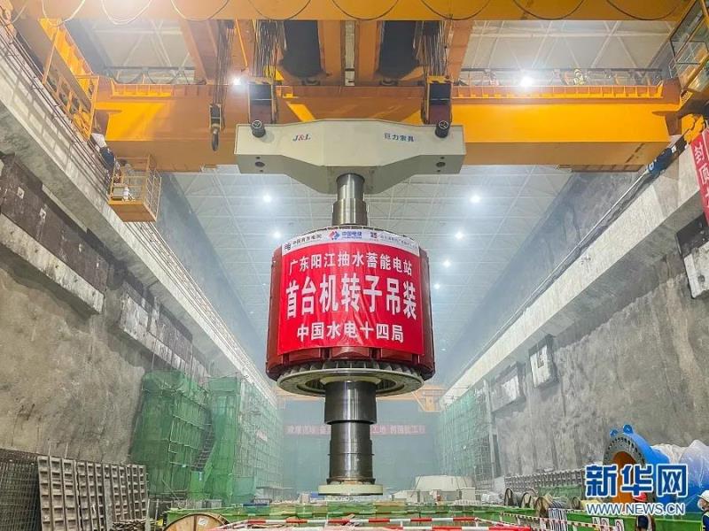 陽(yáng)江抽水蓄能電站完成首臺(tái)機(jī)組轉(zhuǎn)子吊裝。 新華網(wǎng)發(fā)