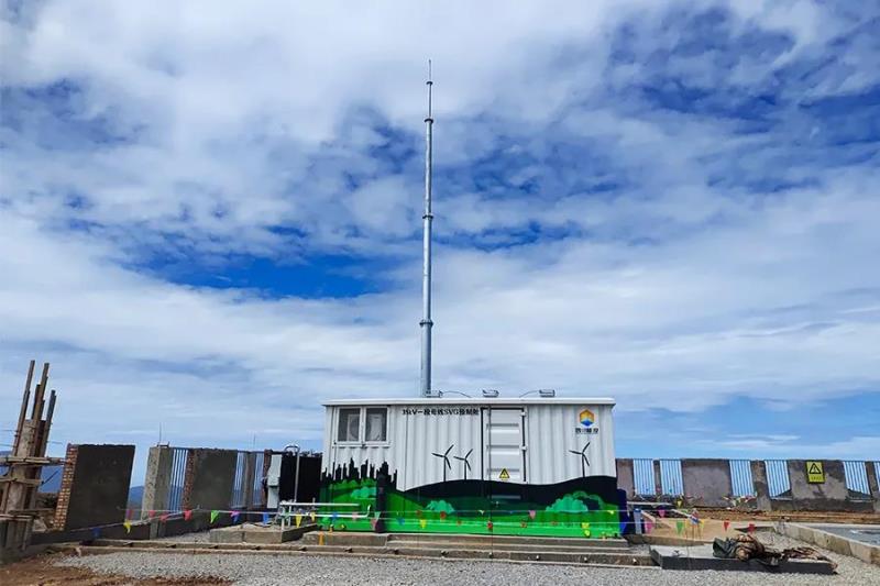 四川能投涼山州美姑縣沙馬乃托風(fēng)電場(chǎng),該風(fēng)電場(chǎng)裝機(jī)容量為50MW,一臺(tái)直掛式水冷SVG坐落于海拔近3000多米的群山之中,投產(chǎn)后穩(wěn)定運(yùn)行。