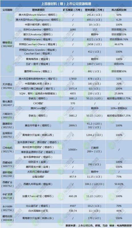 鋰資源的穩(wěn)定供應,決定了電池產業(yè)鏈的快速發(fā)展,從目前的資源儲量來看,國內鋰鈷鎳等關鍵原材料占比并不高,不過隨著大量的海外布局,中國目前的鋰資源已經掌握“半壁江山”,據電池網不完全統(tǒng)計,目前我國鋰個股資源布局基本情況如下:
