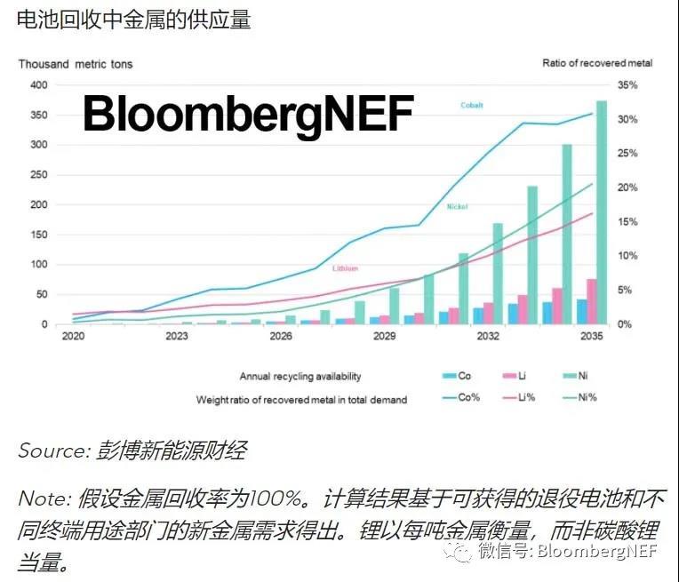 鈷、鎳和鋰是回收中可獲得的最重要金屬。2030年,從回收電池中獲得的鈷、鎳和鋰能夠滿足新產(chǎn)電池需求的5-30%。