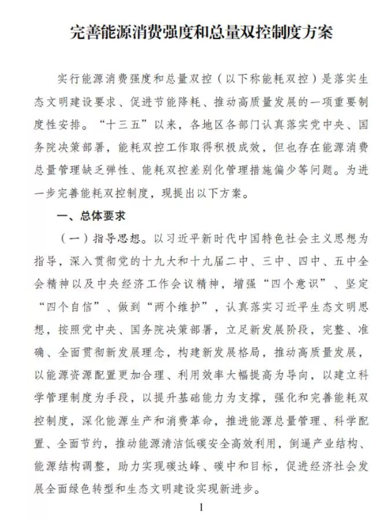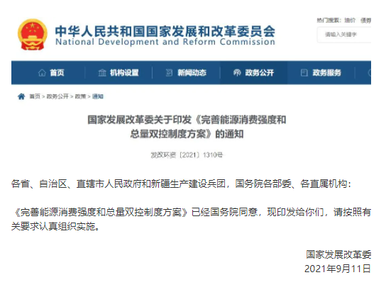 中國儲能網訊:國家發(fā)改委近日印發(fā)《完善能源消費強度和總量雙控制度方案》。