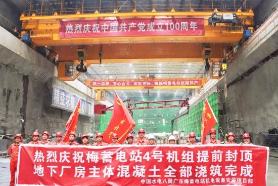9月17日7時,由水電八局承建的廣東梅州抽水蓄能電站地下廠房4號機組完成最后一倉混凝土澆筑,提前60天實現(xiàn)主體封頂,至此,梅蓄電站地下廠房主體混凝土全部澆筑完成。