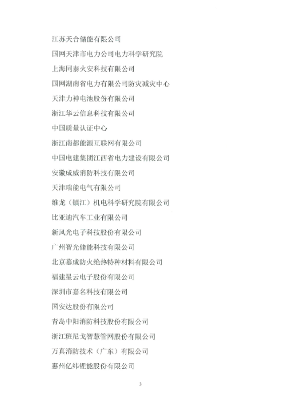 六、《預(yù)制艙式鋰離子電池儲(chǔ)能系統(tǒng)火災(zāi)抑制裝置測(cè)試方法》團(tuán)體標(biāo)準(zhǔn)參編單位名單(排名不分先后):