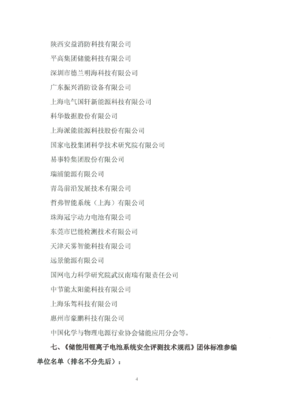 七、《儲(chǔ)能用鋰離子電池系統(tǒng)安全評(píng)測(cè)技術(shù)規(guī)范》團(tuán)體標(biāo)準(zhǔn)參編單位名單(排名不分先后):