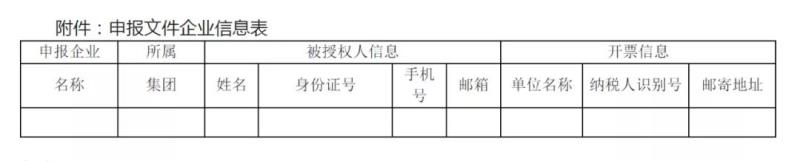3.申領(lǐng)要求:申領(lǐng)人員需攜帶本人身份證、申報(bào)企業(yè)的授權(quán)委托書(加蓋公章)、申報(bào)企業(yè)信息表(見附件,加蓋公章)、資料申領(lǐng)銀行轉(zhuǎn)賬回執(zhí)單復(fù)印件(申報(bào)企業(yè)對(duì)公賬戶,加蓋公章)。