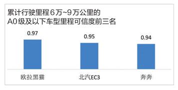A0級及以下車型隨里程數(shù)增加可信度降低明顯