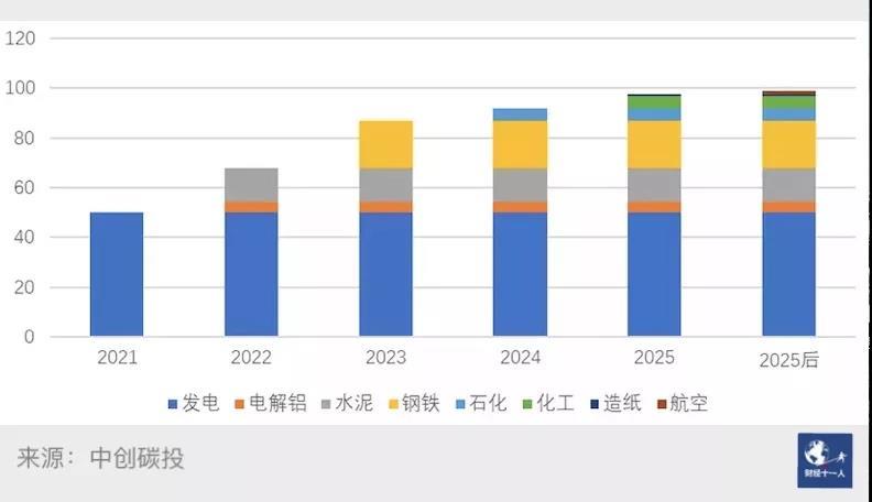 圖1 將有越來(lái)越多的行業(yè)納入全國(guó)碳市場(chǎng)(單位:億噸)