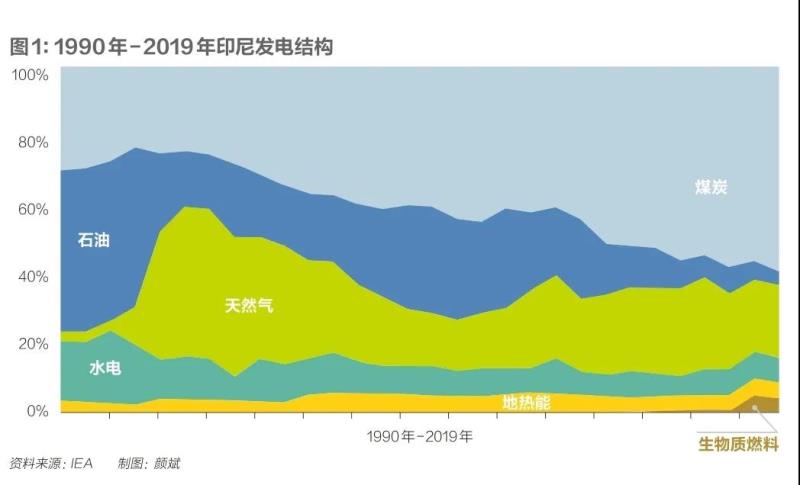 煤炭是全球主要碳排來源之一,更是印尼實(shí)現(xiàn)本國(guó)碳中和與《巴黎協(xié)定》氣候目標(biāo)的重要掣肘。從印尼本國(guó)能源結(jié)構(gòu)看,印尼發(fā)電以煤電為主??稍偕茉匆运?、地?zé)岷蜕镔|(zhì)發(fā)電為主。