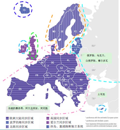 歐洲電網(wǎng)主要由歐洲大陸電網(wǎng)、北歐電網(wǎng)、波羅的海電網(wǎng)、英國(guó)電網(wǎng)、愛爾蘭電網(wǎng)等5個(gè)跨國(guó)互聯(lián)同步電網(wǎng),以及冰島、塞浦路斯2個(gè)獨(dú)立電力系統(tǒng)構(gòu)成,其中歐洲大陸電網(wǎng)是世界上最大的同步電網(wǎng)之一,服務(wù)人口人口7.3億,覆蓋歐洲24個(gè)國(guó)家,面積450萬平方公里,裝機(jī)規(guī)模達(dá)6.7億千瓦。