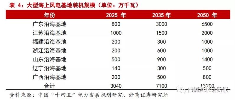 十四五期間將重點建設(shè)一體化大基地和海上風(fēng)電。2021年3月30日,《中華人民共和國國民經(jīng)濟(jì)和社會發(fā)展第十四個五年規(guī)劃和2035年遠(yuǎn)景目標(biāo)綱要》正式獲得通過,《綱要》要求構(gòu)建現(xiàn)代能源體系,推進(jìn)能源革命,建設(shè)清潔低碳、安全高效的能源體系,提高能源供給保障能力。該方案重點提到加快非化石能源的發(fā)展,“建設(shè)一批多能互補的清潔能源基地,有序發(fā)展海上風(fēng)電,加快西南水電基地建設(shè)”。大型清潔能源基地主要包括:雅魯藏布江下游、金沙江下游、雅礱江流域、黃河上游和幾字灣、河西走廊、新疆、冀北、松遼等9個清潔能源基地,以及建設(shè)廣東、福建、浙江、江蘇、山東等5個海上風(fēng)電基地。