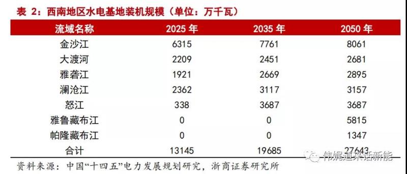 我國將持續(xù)開發(fā)水、風(fēng)、光在內(nèi)的多個清潔能源基地。根據(jù)《中國“十四五”電力發(fā)展規(guī)劃研究》,未來我國將持續(xù)重點開發(fā)包括水電、陸風(fēng)、海風(fēng)、光伏等電源在內(nèi)的多個清潔能源基地,進(jìn)而形成9個一體化能源基地的開發(fā)格局。分電源類型來看,預(yù)計到2025/2035/2050年,我國西南地區(qū)水電基地的總裝機(jī)規(guī)模將分別達(dá)到1.31/1.97/2.76億千瓦;陸上風(fēng)電基地的總裝機(jī)規(guī)模將分別達(dá)到0.8/2.55/3.98億千瓦;海上風(fēng)電基地的總裝機(jī)規(guī)模將分別達(dá)到0.3/0.71/1.32億千瓦;太陽能發(fā)電基地的總裝機(jī)規(guī)模將分別達(dá)到0.56/3.09/5.46億千瓦。