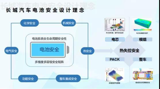 實現(xiàn)路徑來看,從電芯、模組、電池系統(tǒng)、整車4層進行匹配,圍繞電芯測試、系統(tǒng)數(shù)據(jù)、安全設(shè)計、虛擬仿真、測試驗證5大維度設(shè)計理念,實現(xiàn)電池?zé)崾Э匕踩雷o。