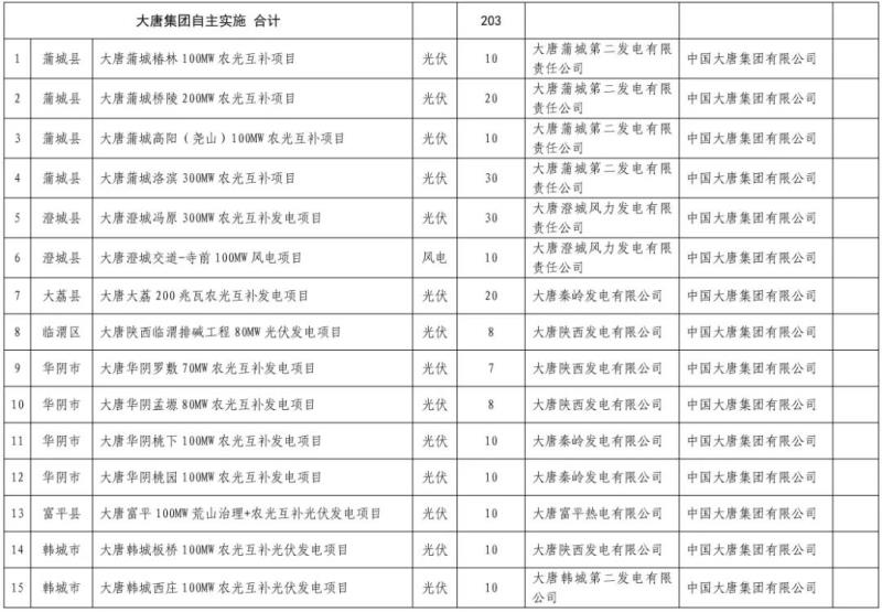 根據(jù)投資業(yè)主來看,大唐集團203萬千瓦;國家能源集團、陜西投資集團、華能分別為20萬千瓦;華電、華潤、中國能建、陽光新能源、河北建投、中國能源工程、拓日新能、陜西桂花能源等開發(fā)規(guī)模分別為10萬千瓦。