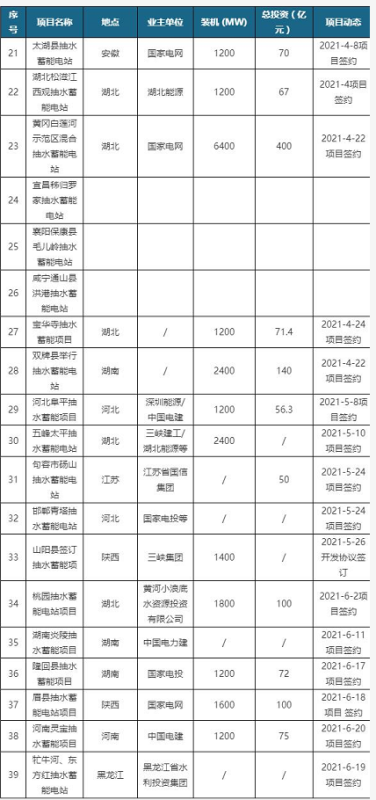 抽水蓄能項(xiàng)目簽約、核準(zhǔn)、開(kāi)工等(表二)