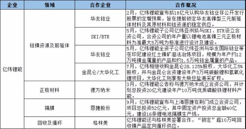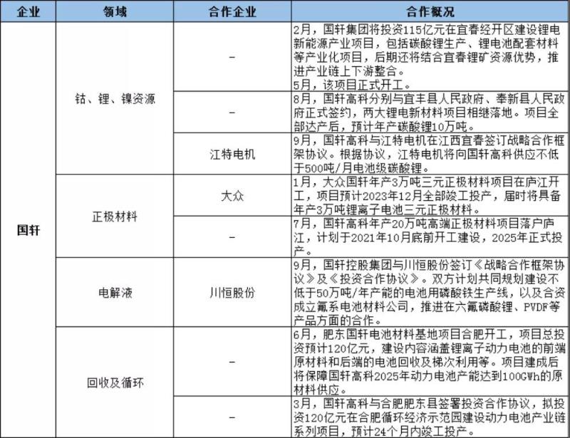 來看2021年以來,寧德時(shí)代、國軒高科、億緯鋰能等頭部動(dòng)力電池企業(yè)的上游資源的加速布局: