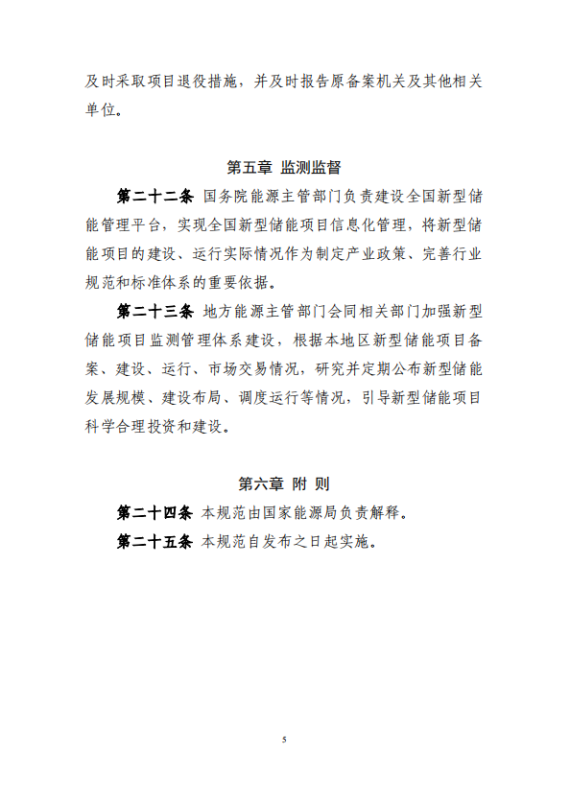 第二十三條 地方能源主管部門會同相關部門加強新型儲能項目監(jiān)測管理體系建設,根據(jù)本地區(qū)新型儲能項目備案、建設、運行、市場交易情況,研究并定期公布新型儲能發(fā)展規(guī)模、建設布局、調(diào)度運行等情況,引導新型儲能項目科學合理投資和建設。