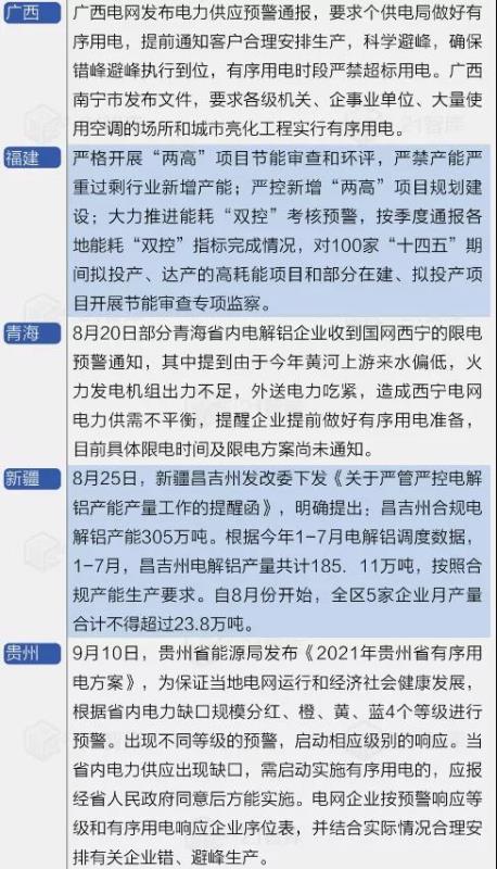 4、《能耗雙控、限產(chǎn)限電的宏觀分析與展望》,中信證券;