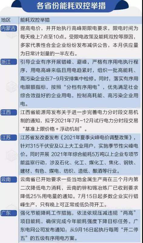 但自8月下旬以來,國家發(fā)改委點名多個省區(qū)能耗雙控工作未達(dá)標(biāo),并進行預(yù)警。此后,能耗雙控工作緊張的地區(qū),陸續(xù)開始在三季度末實施限電限產(chǎn),試圖沖刺完成指標(biāo)。