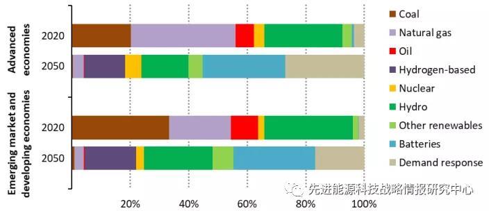 圖1 2020年和2050年不同技術(shù)支撐電力系統(tǒng)靈活性