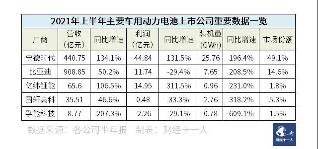 過去六氟磷酸鋰在整個鋰電池的原料成本中占比不到3%,而今年已經(jīng)超過10%。以銷售六氟磷酸鋰為主要業(yè)務(wù)的多佛多(SZ.002407)為例,2021年上半年業(yè)績報告顯示,在營收同比增長67.68%的前提下,利潤同比增幅高達1859.97%。