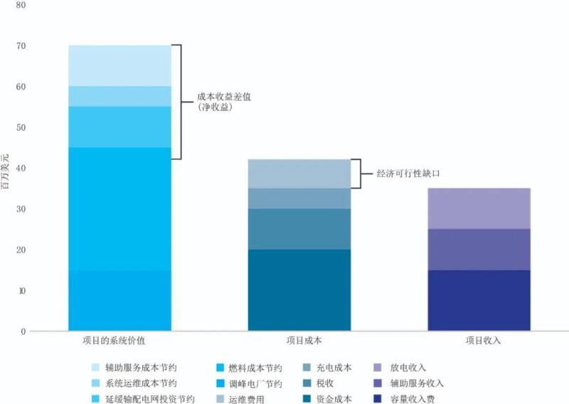 儲(chǔ)能的系統(tǒng)范圍收益只能是在項(xiàng)目可行的情況下實(shí)現(xiàn)。此時(shí)意味著有足夠的收入流來(lái)激勵(lì)項(xiàng)目開(kāi)發(fā)者或業(yè)主進(jìn)行投資。不幸的是,一些系統(tǒng)的收益無(wú)法貨幣化,或者項(xiàng)目業(yè)主無(wú)法直接獲取。因此,在很多情況下,沒(méi)有足夠的激勵(lì)支持項(xiàng)目開(kāi)發(fā)者繼續(xù)推進(jìn)。