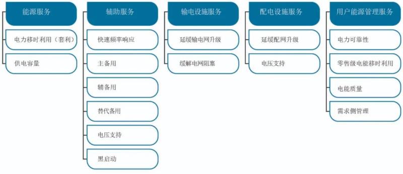 圖6 電力儲(chǔ)能服務(wù)以及它們與可再生能源發(fā)電并網(wǎng)的關(guān)聯(lián)