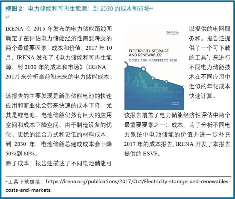 本報(bào)告提出的ESVF是IRENA之前在儲(chǔ)能促進(jìn)VRE并網(wǎng)研究方面工作的延續(xù)(IRENA,2015a)[4]。ESVF用于識(shí)別儲(chǔ)能給電力系統(tǒng)參與方帶來(lái)的價(jià)值。它允許參與方分析電力儲(chǔ)能系統(tǒng)應(yīng)用的價(jià)值和挑戰(zhàn)??蚣芸紤]以下因素:a)電力儲(chǔ)能給電網(wǎng)帶來(lái)的價(jià)值;b)儲(chǔ)能的最佳利用方式;c)儲(chǔ)能總的經(jīng)濟(jì)收益大于成本的方法,來(lái)保障系統(tǒng)落地并降低系統(tǒng)成本[5]。
