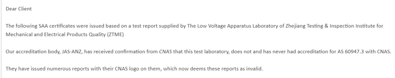 10月1日,澳洲SAA Approvals Pty Ltd發(fā)布重磅消息,正式通知所有通過(guò)ZTME實(shí)驗(yàn)室獲得的AS60947.3報(bào)告無(wú)效,這也意味著幾乎所有SAA頒發(fā)的隔離開(kāi)關(guān)證書失效。而從2022年1月1日開(kāi)始,澳洲市場(chǎng)銷售的外置隔離開(kāi)關(guān)必須要有新認(rèn)證,而目前僅有通過(guò)TüV萊茵澳大利亞本土獲得AS60947.3報(bào)告的隔離開(kāi)關(guān)才符合澳洲市場(chǎng)要求!