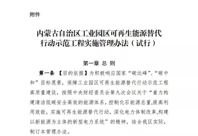 附件:《內(nèi)蒙古自治區(qū)工業(yè)園區(qū)可再生能源替代行動示范工程實施管理辦法(試行)》
