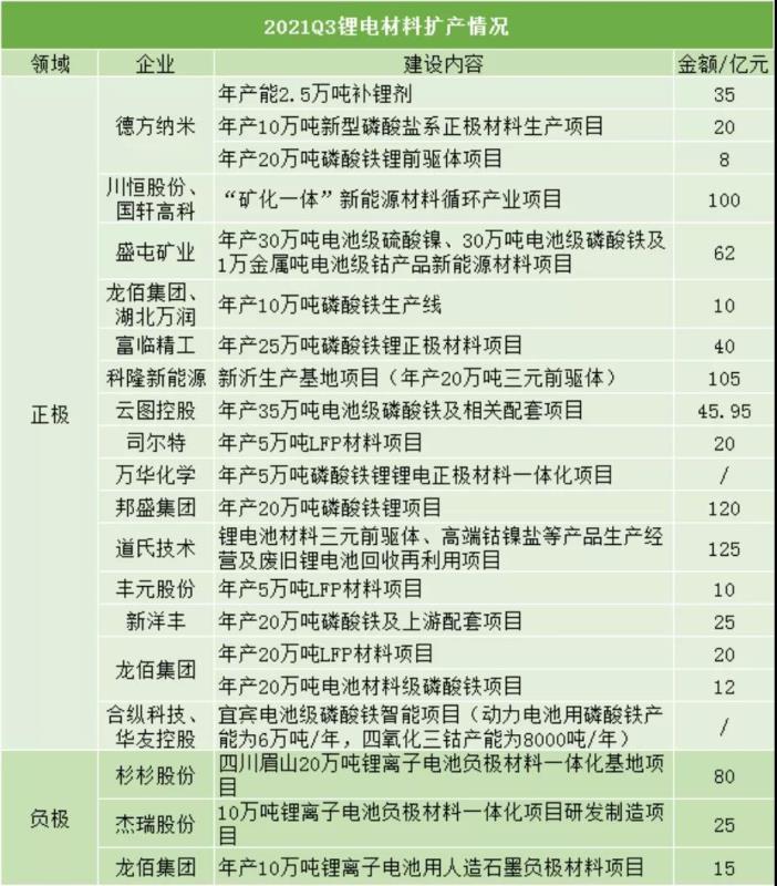 2021年國內(nèi)鋰電產(chǎn)業(yè)鏈擴產(chǎn)情況