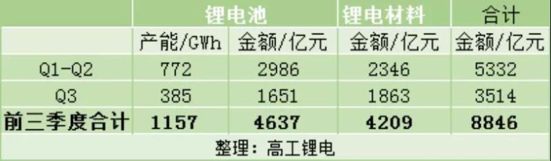 統(tǒng)計可知,前三季度鋰電產(chǎn)業(yè)鏈合計投資金額已達8846億元,照此趨勢,今年鋰電產(chǎn)業(yè)鏈擴產(chǎn)投資總額將超萬億,相當(dāng)于再造一個“寧德時代”。