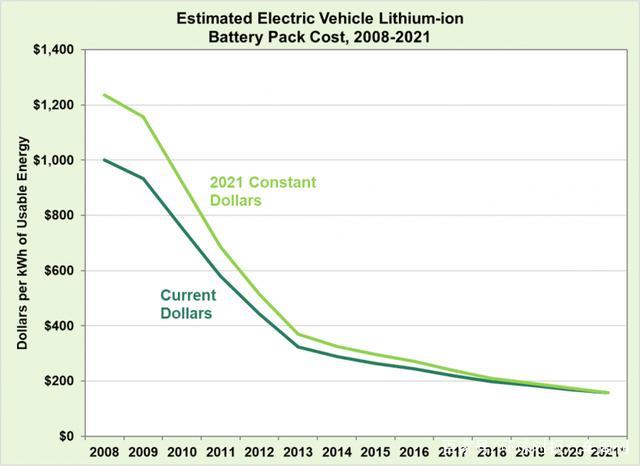 從美國(guó)能源部能源效率和可再生能源辦公室提供的圖表中可以看出,大約在兩年前,鋰離子電池的價(jià)格降至200美元(約合1289元人民幣)以下,這意味著兩年內(nèi)動(dòng)力電池的成本削減了近25%。