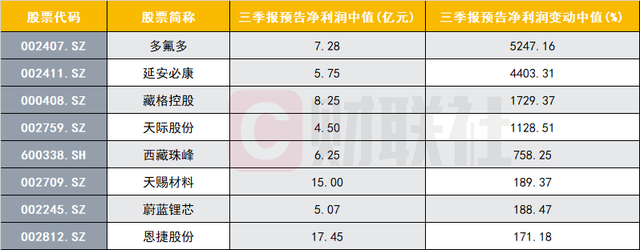 此外,已公布的三季報業(yè)績預(yù)告中,藏格控股、天際股份業(yè)績預(yù)增幅度均超過10倍。