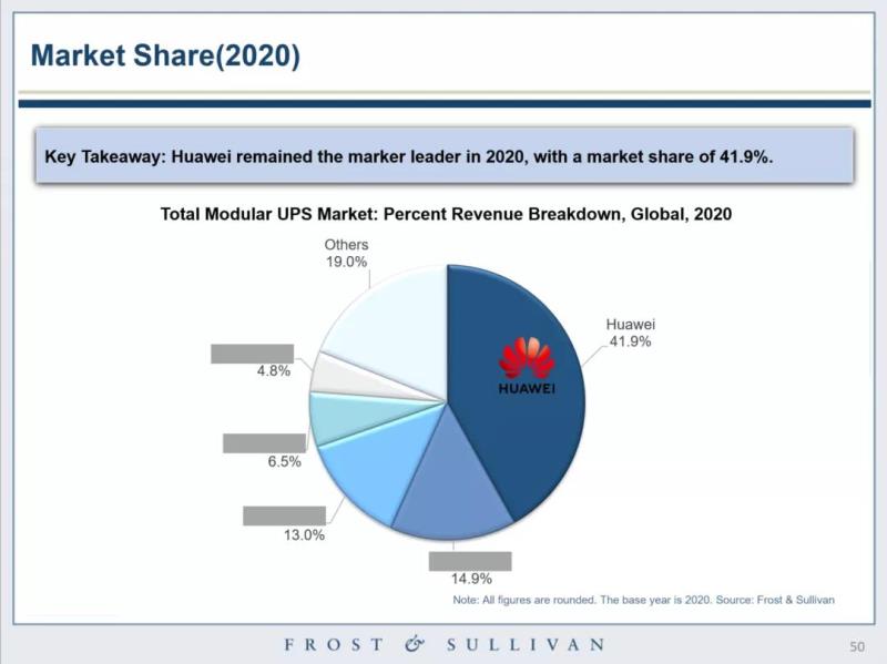 近日,第三方權(quán)威咨詢機構(gòu)Frost & Sullivan發(fā)布《全球模塊化UPS市場報告》,對全球模塊化UPS市場動向、市場份額及發(fā)展趨勢等進行了分析與洞察。其中,報告顯示,華為作為模塊化UPS的創(chuàng)新引領(lǐng)者,2020年市場份額排名全球第一,持續(xù)領(lǐng)跑全球市場。