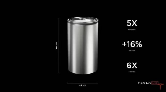 使用新款電芯之后,一臺車上的電池外殼材料將會減少,制造成本上更是會有所降低,每kWh的電池成本降低56%,每kWh所需的投資成本降低69%。并且,不僅成本下降,容量還有所提升,是2170電芯容量上的5倍,同時其輸出功率也提高了6倍,整車續(xù)航里程也將增加16%。新電池內(nèi)部還采用了無極耳設(shè)計,有助于降低內(nèi)阻,減少發(fā)熱,能耗表現(xiàn)以及充電性能都更加優(yōu)秀。