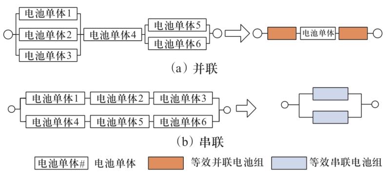 圖3 電池網(wǎng)絡拓撲的等效串/并聯(lián)原理模型