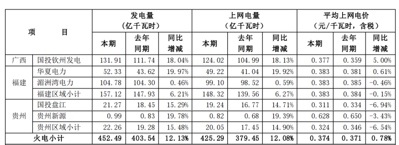國(guó)投電力上網(wǎng)電價(jià)同比增約6%