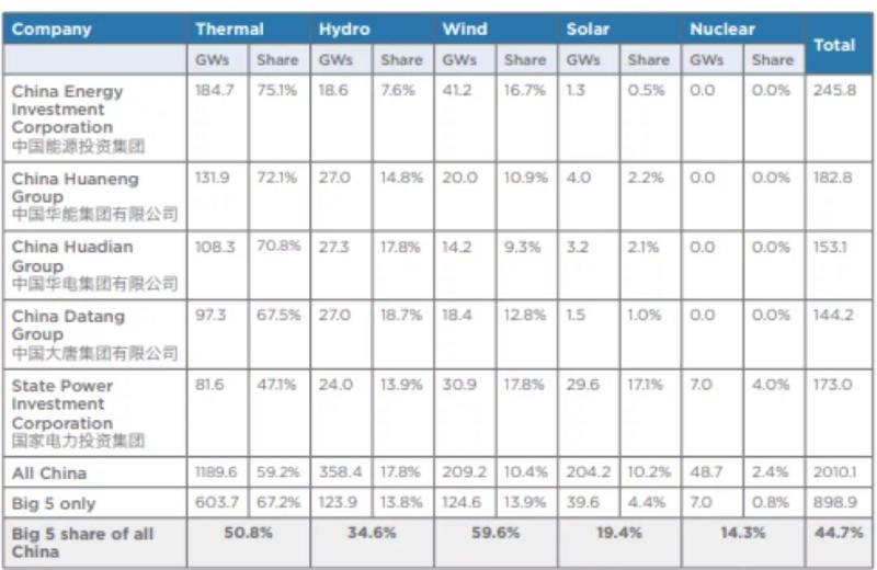 五大發(fā)電集團是中國電力開發(fā)運營,特別是火電和風電的主力。截至2019年底,五大發(fā)電集團累計火電裝機量達到603.7吉瓦,占全國火電總裝機一半以上。由于地方需要向央企集團上報煤電項目,獲取央企集團的審批同意,因此,五大集團的發(fā)展戰(zhàn)略及其指導下的投資決策,將對地方煤電未來發(fā)展產生較大影響,并已直接體現(xiàn)在具體的地方項目上。