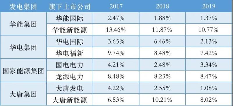 表. 中央發(fā)電集團旗下主營火電與新能源上市公司投資回報率(ROE)對比
