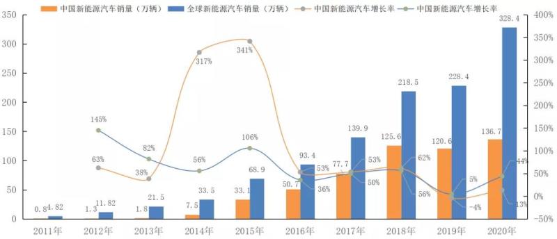 圖 全球及中國(guó)新能源汽車銷量和增長(zhǎng)率圖