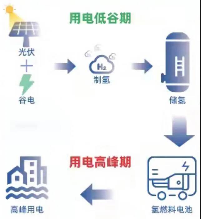 什么是氫電耦合?就是利用電網(wǎng)谷電、清潔能源制氫,將富余的電力轉(zhuǎn)化為綠色氫能存儲(chǔ),在用電高峰時(shí)通過(guò)氫燃料電池發(fā)電實(shí)現(xiàn)電網(wǎng)削峰。在不影響園區(qū)正常生產(chǎn)用能需求同時(shí),氫電耦合技術(shù)能夠迅速實(shí)現(xiàn)用電負(fù)荷大幅下降。
