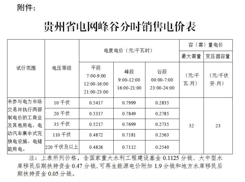 附件:貴州省電網(wǎng)峰谷分時(shí)銷售電價(jià)表