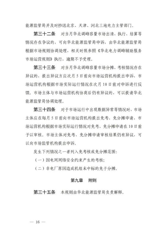 《華北電力調(diào)峰容量市場(chǎng)運(yùn)營(yíng)規(guī)則(暫行)》