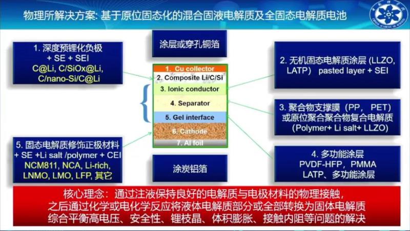 對此,李泓有兩個方案,一種是把固態(tài)電解質生長在正負極顆粒表面,另一種則是在電芯化成或者在電極制造的過程中,將液態(tài)電解質或者是漿料轉化為固態(tài)從而實現(xiàn)。